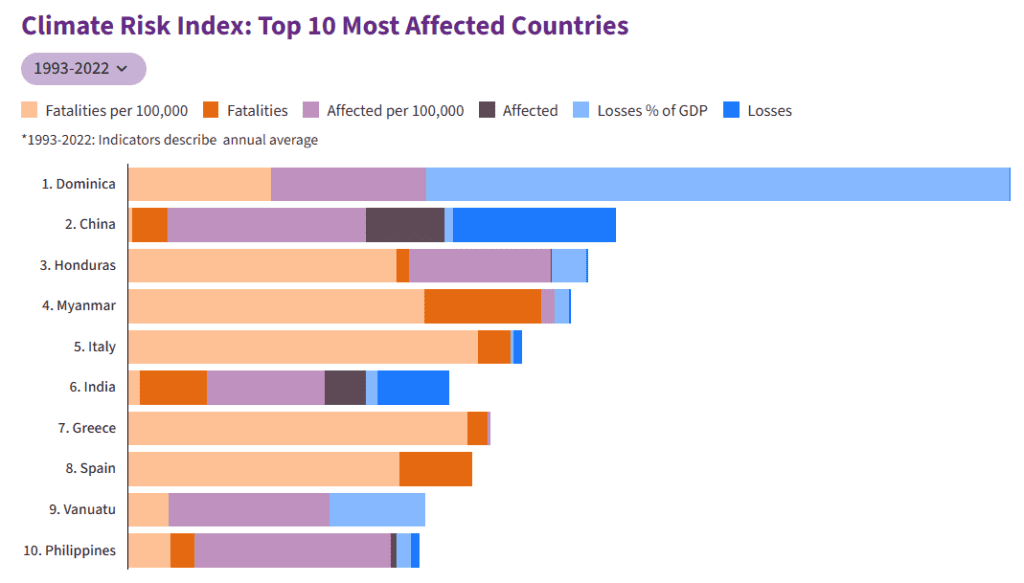 The Climate Risk Index highlights the disproportionate impact of extreme weather on low- and middle-income countries, with seven of the top ten most affected nations falling into this category.