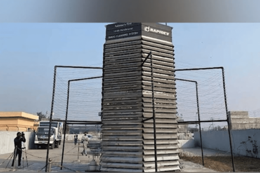 Lahore’s first smog tower was installed in the Mehmood Booti area to combat air pollution, with claims that it could purify up to 50,000 cubic meters of air per hour. The Punjab Environmental Protection Department initiated a trial run to assess its performance against pollutants like PM2.5.