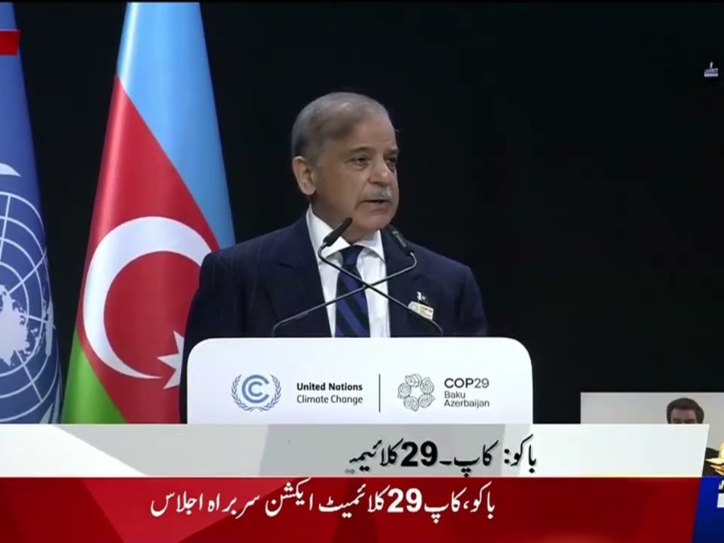 BAKU (Nov 13, 2024): Prime Minister Shehbaz Sharif addressed the United Nations Climate Change Conference (COP29) in Baku, Azerbaijan, emphasizing the unmet financial commitments from previous summits. Speaking on the final day of the World Leaders Climate Action Summit, he noted that funds pledged at COP27 and COP28 had not yet been delivered, hampering efforts in countries like Pakistan that are highly vulnerable to climate impacts.