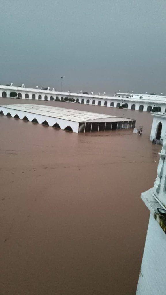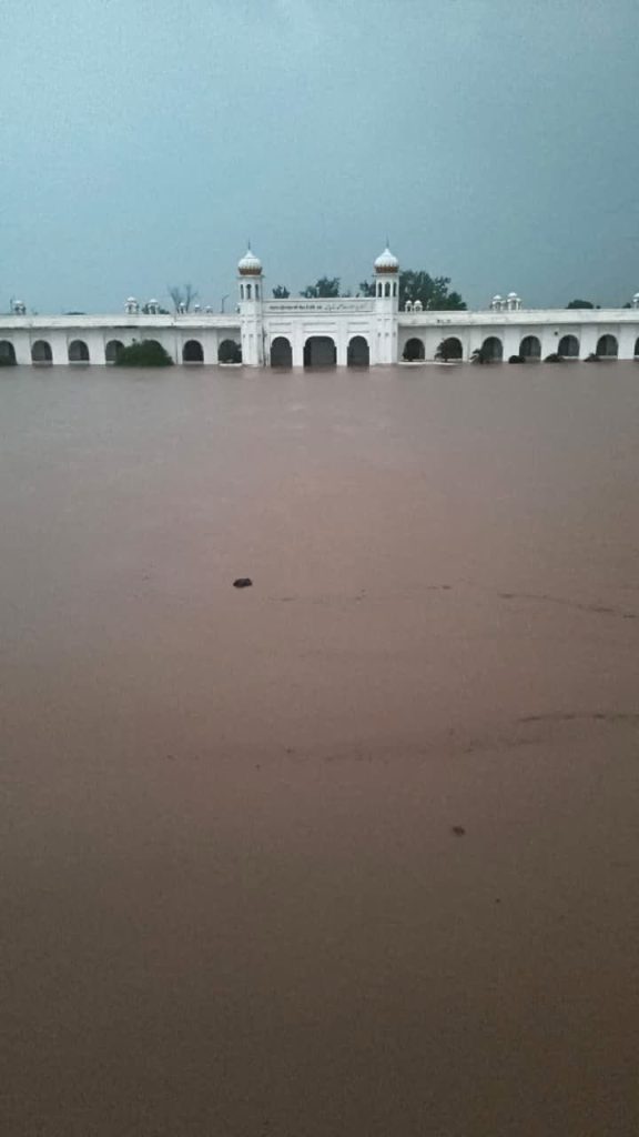 Meanwhile, rising waters have submerged the holy Sikh shrine of Gurdwara Darbar Sahib in Kartarpur, along with surrounding villages and farmland, damaging crops of rice, maize, and vegetables.